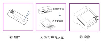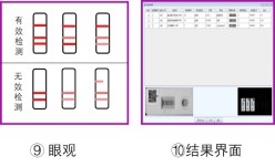 采用胶体金免疫层析检测卡作为一级传感器,即待测物与检测卡上的捕获抗体和胶体金标记抗体的结合产生颜色变化,显色的强度变化与待测物含量相关,而后测量系统运用光电扫描测试反应区,获得光电信号,然后对光电信号的强弱进行分析处理,定量地分析出待测物的含量。